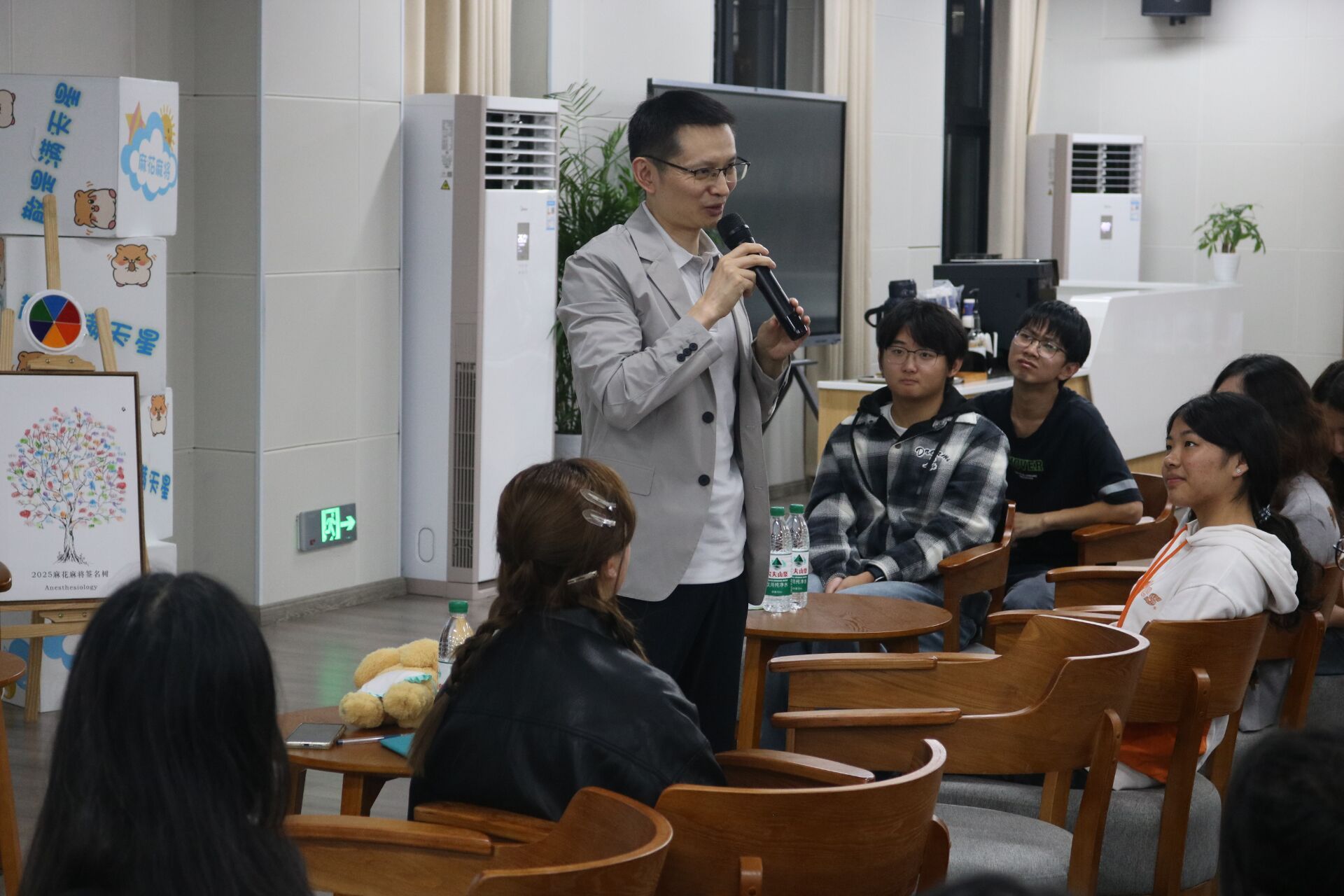 在主讲环节,周军主任向新生系统介绍了校院发展历史、教学师资、优秀校友、就业前景,让同学对学校和院系师与专业学习有了更深了解。周军主任以易懂且诙谐的语言介绍了专业的发展进程,剖析了麻醉医生在现代医院的核心作用,激发了新生医疗的兴趣与责任感。风趣的语言和真诚实用的建议让新生们凝神投入,现场笑声、掌声不断。互动交流环节,新生们踊跃提问,围绕“专业课程学习重点”、“未来就业方向”、“科研训练”等问题,和两位老师进行了深度交流。老师的细致解答如拨云见日,让新生对未来的学习生活充满了信心与期待。