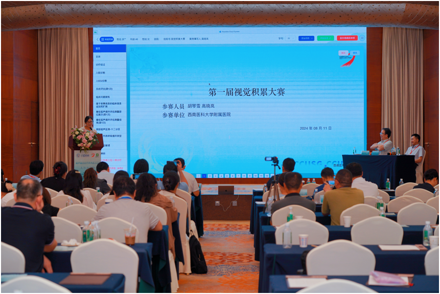 在大会期间,四川省国际医学交流促进会重症超声与血流动力学专委会首次举办了“第一届重症超声视觉积累大赛”,内容丰富多样。此次大赛吸引了来自全国各医院重症医学超声团队的积极参与,经过多轮选拔,由我院重症医学科高晓岚副教授指导,胡琴雪医师汇报的案例成功晋级决赛。