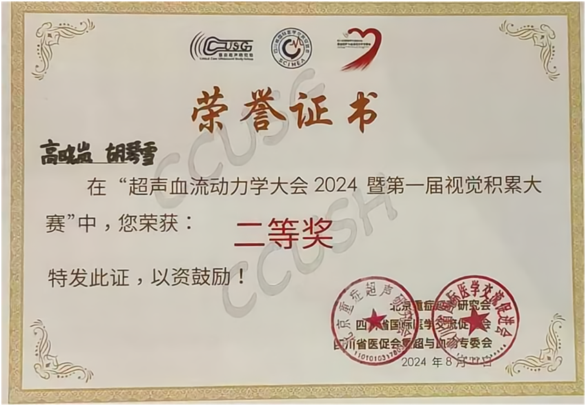 此次荣誉的获得,不仅是高晓岚及胡琴雪医生团队努力的成果,也是我科长期注重青年医师临床能力培养和紧跟重症超声医学发展所结出的硕果。通过此次学术交流活动及重症超声案例比赛,彰显了我院在重症超声领域的卓越技术实力、深厚的学术底蕴以及创新的临床应用能力。我们的参赛团队凭借精湛的技术操作、丰富的临床经验以及深入的分析能力,展示了复杂重症病例中超声技术的精准应用与显著成效,不仅提高了同行对重症超声价值的认识,也促进了跨学科间的交流与合作。此次活动不仅为我院赢得了业界的广泛赞誉,更为重症患者带来了更为精准、高效、个体化的诊疗方案,有效提升了重症患者的救治成功率与生存质量,进一步推动了重症医学领域的发展与进步。
