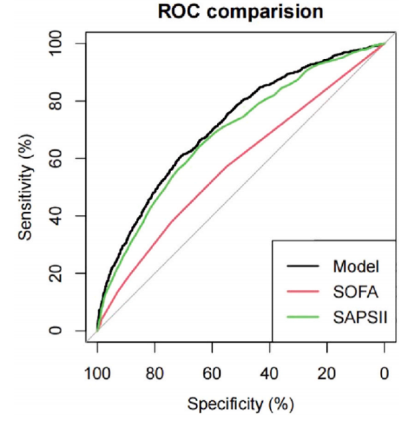 然而,我们承认使用我们的模型预测特定个体的住院死亡率存在一定的局限性。这些局限性主要包括来自不同国家或地区的患者之间的临床数据差异。虽然我们对不同单位的数据进行了标准化,但由于用于测试的试剂不同,测量值的变化是不可避免的。此外,外部验证数据集的样本量小于之前的MIMIC IV数据集,并且存在临床指标的匹配差异。此外,由于数据限制,未考虑可能影响患者结局的其他重要因素,如治疗策略、感染控制措施和其他护理干预措施。因此,我们的模型应被视为需要考虑这些因素的辅助工具,而不是唯一的决策工具。