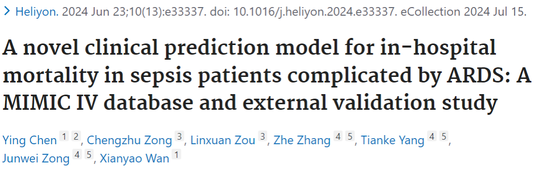 结论:我们的模型是识别住院死亡风险高的脓毒症并发ARDS患者的宝贵工具。这可以实现个性化治疗策略的实施,从而改善患者的预后。