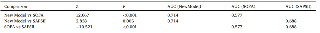4.与SOFA和SAPS II的内部验证和比较