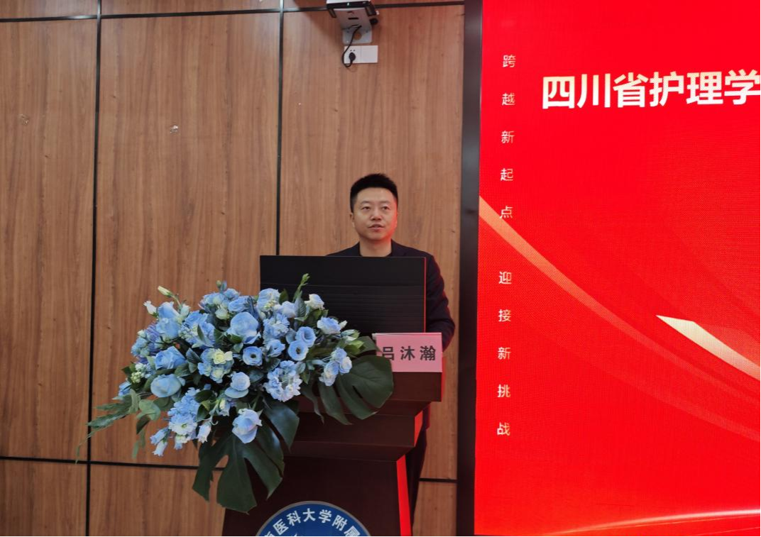吕沐瀚副院长致辞,他希望通过本次比赛,提升泸州市手术室护理人员护理理论和实践水平,为泸州市的健康卫生事业贡献力量,并预祝本次会议取得圆满成功。
