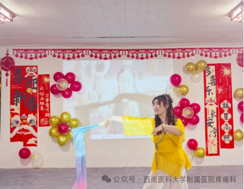 接下来的文艺表演环节,迎来了科室员工们倾情奉献的精彩节目。在这特别的日子里,他们用歌声、舞蹈和小品展现了对科室的深厚情感。首先登场的是医护团队带来的舞蹈《开门红》《好运来》等舞蹈串烧,柔美的舞步与温暖的旋律,仿佛在诉说着一份份无声的关怀和爱。紧接着,王又弘护师与杨朝平护师为大家表演了哑剧《你有,我也有》,幽默的内涵、专业的表演,让大家笑出了眼泪花。喻亮护师为大家献上了古典舞《梅香如故》,每一个舞姿都仿佛在讲述着这一段一路走来的奋斗史。十年的风雨、十年的坚持,汇聚成了今天这个光辉灿烂的时刻。