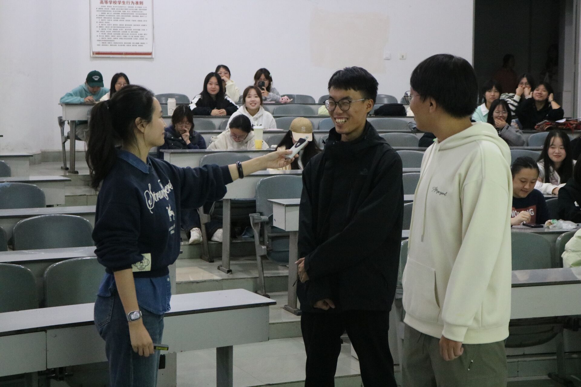 讲座在轻松的破冰环节中正式拉开帷幕,同学们现场填写屏幕使用时间收集表。生成的数据让大家直观了解身边没有边界感的事。随后四名志愿者上台亲身体验了有无边界感人或事。