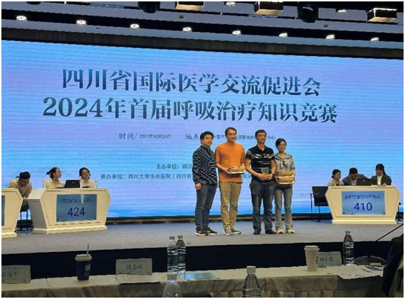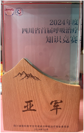 在精彩的学术会议后,专委会举办了四川省首届呼吸治疗知识竞赛,在科主任雷贤英教授带领下,科室派出徐陶、李波、胡琴雪三位医师组成参赛团队参加了此次比赛。比赛内容丰富多样,本次比赛总共6支队伍参与,分别来自成都、德阳、南充、资阳、攀枝花、泸州等地,经过紧张而激烈的多轮角逐,由我院重症医学科组成的参赛团队荣获亚军。在必答题环节,以最高的正确率体现了扎实的专业知识功底;在病例分析环节中,参赛队员沉着冷静,层层递进,以清晰的逻辑对病情进行了剖析,赢得了评委的一致好评,充分展现了队员临床思维的敏锐性。